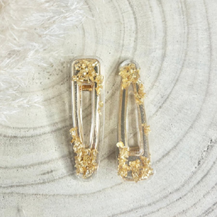 Découvrez nos magnifiques Barrettes à cheveux « NÉREÏDES », spécialement conçues pour apporter une touche d’élégance à votre coiffure quotidienne. Fabriquées en Résine Époxy, ces barrettes se distinguent par leur design unique et leurs finitions soigneusement travaillées. Leurs couleurs translucides et les feuilles d’or qui les ornent font ressortir votre personnalité tout en restant discrète et raffinée, ce qui les rend parfaites pour toutes les occasions.